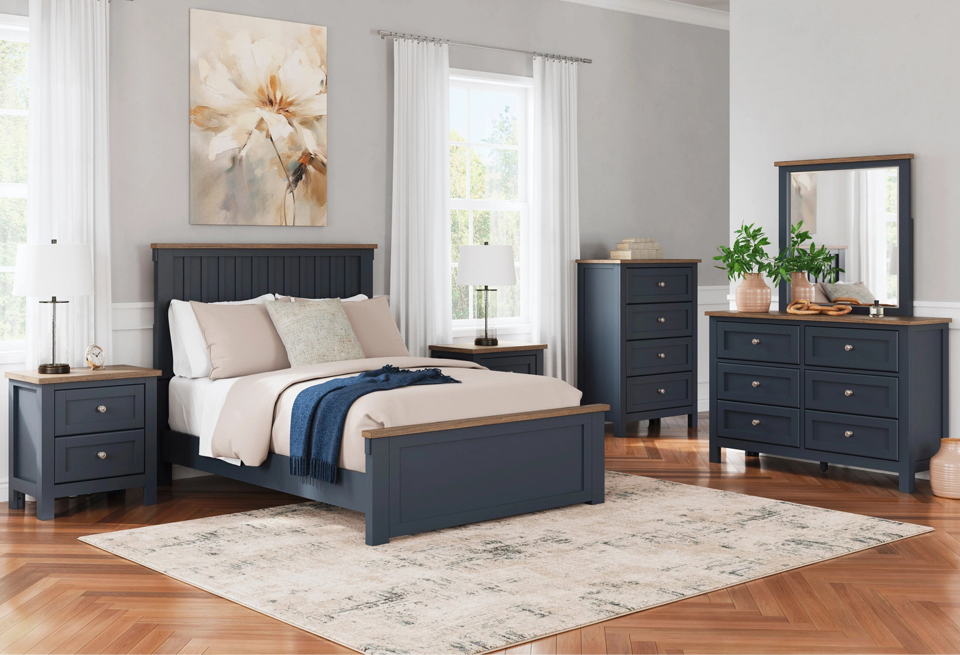 Add homespun charm to your restful retreat. A modern take on a timeless silhouette, the Landocken collection pairs a dark slate blue finish with light brown accents. Whether it's part of a charmingly curated guest suite or a casually carefree kids room, this bed is a welcome addition.