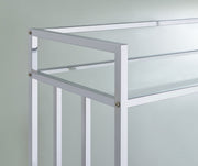 Welcome guests and serve up libations with this sleek contemporary bar cart. A rectangular silhouette outlined in a slim, square metal frame lends an Art Deco-inspired aesthetic to dining spaces and more. The polished, metallic finish elevates it even further, pushing the modern glam expression. Slide this luxe bar cart against a wall or glide it into the next room as you host parties, with the help of its lockable caster wheels. Two clear tempered glass shelves allow you to showcase your favorite bottles and barware. Key Features: • The slim metal frame and round silhouette slips into corners effortlessly • Two tiers of clear tempered glass shelves for ample storage • Exquisite brass-plated metallic finish offers a glam touch • Three top side rails rest against walls elegantly • Smoothly glide this bar cart with the lockable caster wheels • Handcrafted from premium metal with refined sophistication