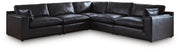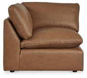 Catering to your contemporary lifestyle, this sectional is a handsome marriage of masculine and feminine sensibilities. Feather-fiber cushions and bolster pillows soften the look of its chunky, linear silhouette. A warmly hued combination of leather and faux leather upholstery levels up the affordable luxury. And you'll never run out of ways to stage this seating arrangement—each piece is fully finished on all sides and capable of standing solo. Urban sophistication has never been more versatile.
